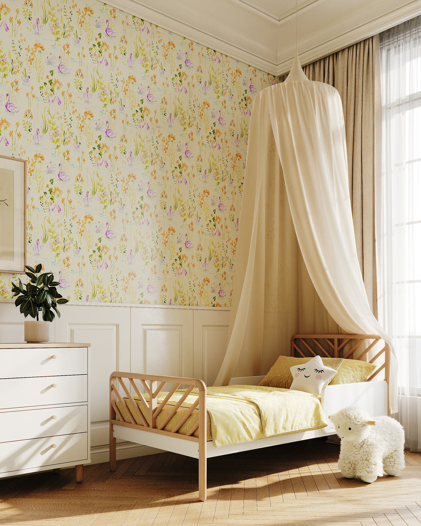 Swan and Floral Print Wallcovering