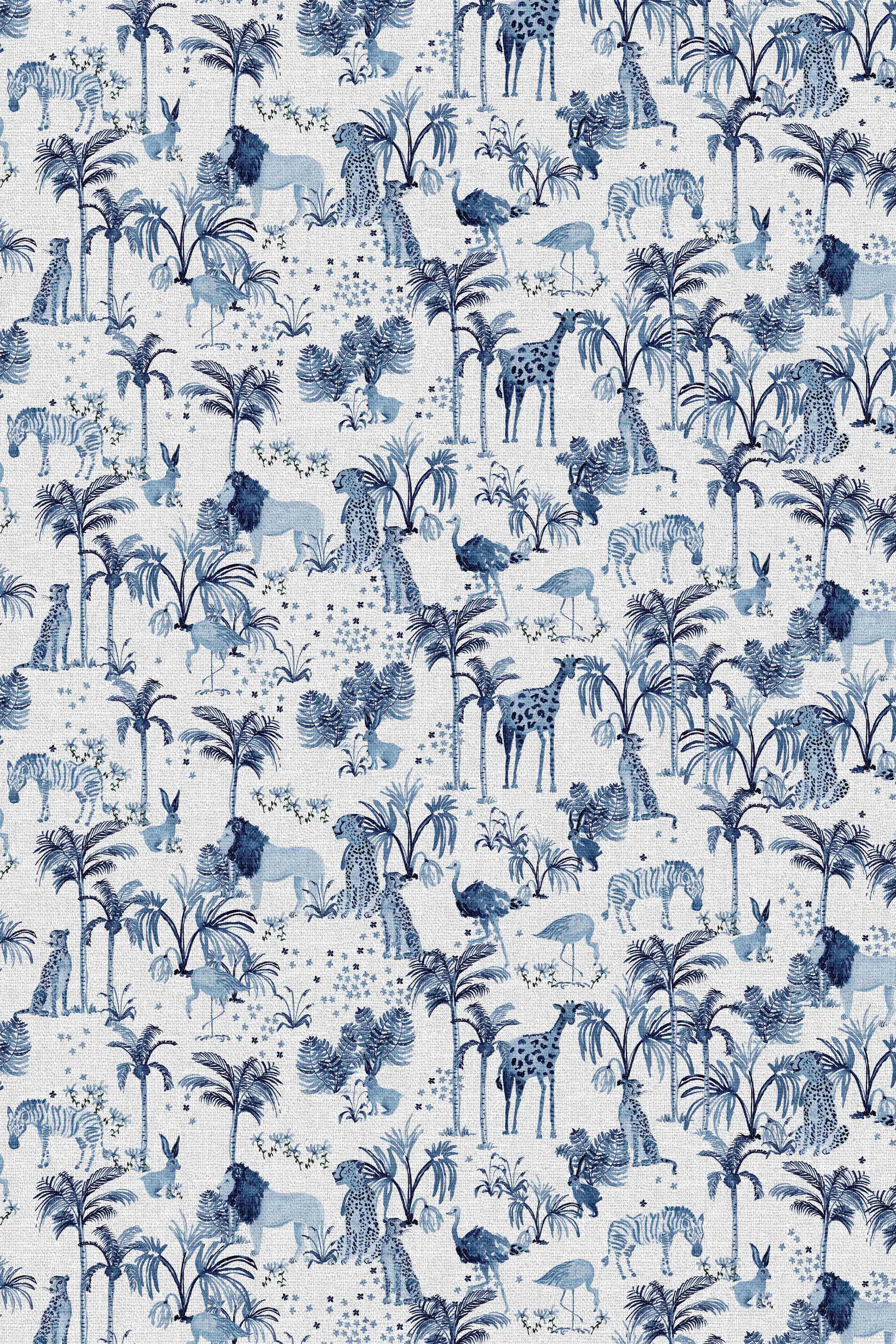 Blue Safari Toile Fabric