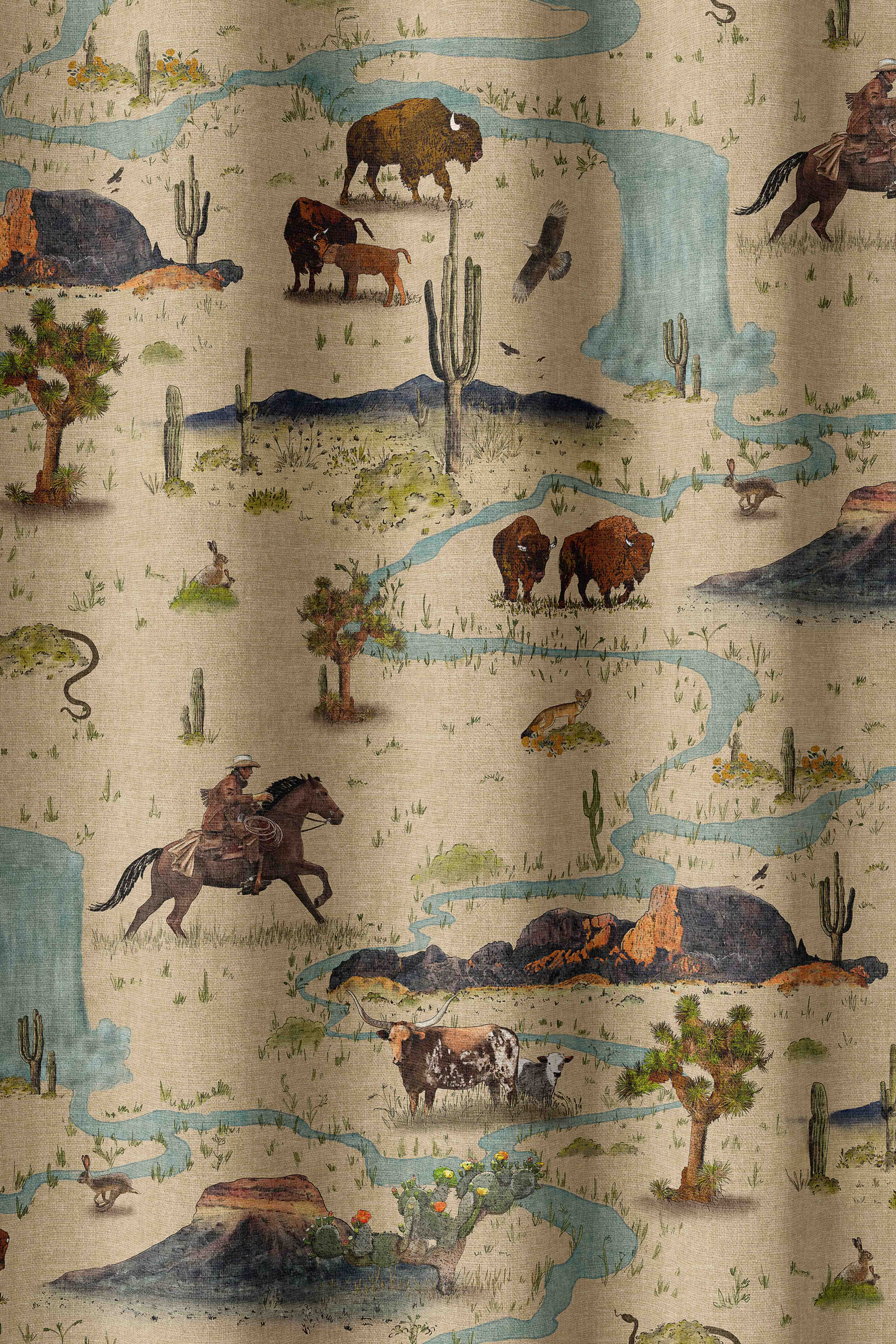 Western Toile Fabric - Sand