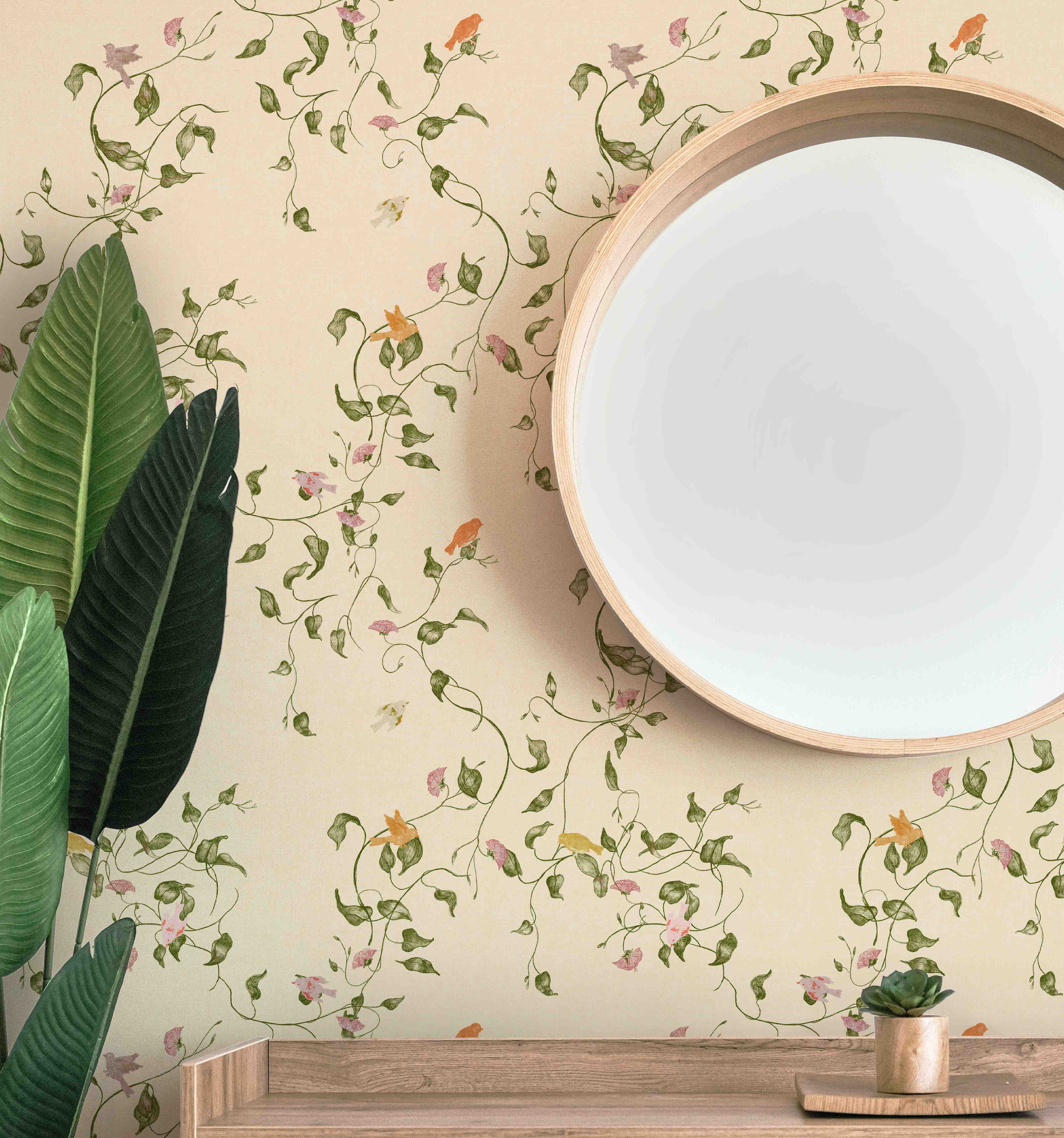 Foliage and Birds Wallcovering