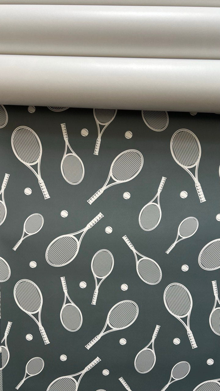 Tennis Racquet Wallpaper - Pre-pasted Paper - 14 Rolls of 25"W x 115"H