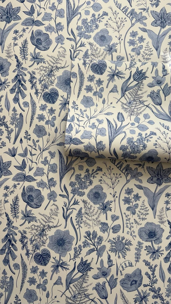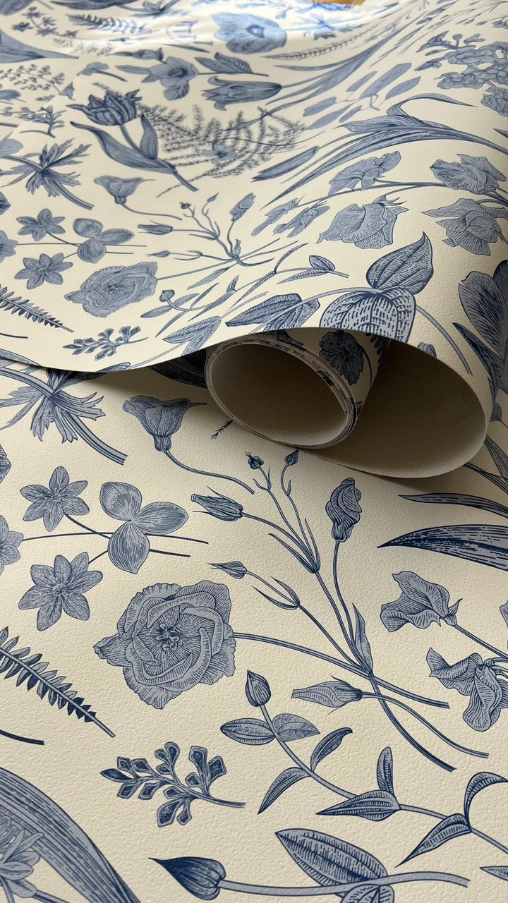 Vintage Blue Floral Wallpaper