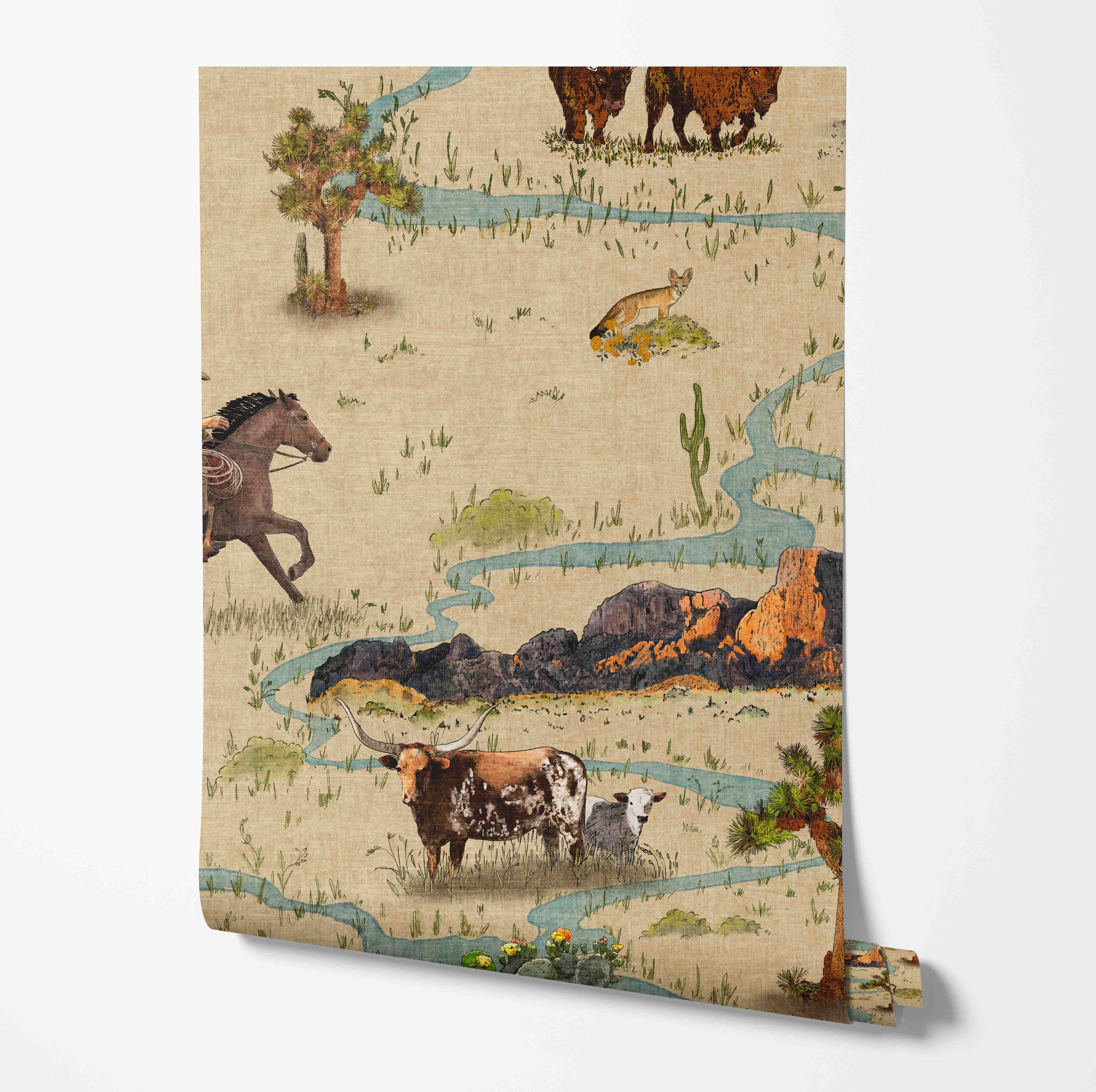 Western Toile Wallcovering - Sand
